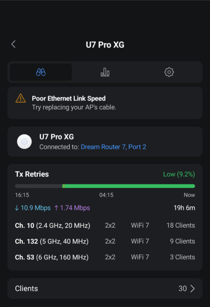 I do have another issue with the dream router 7. I wanted to use the sfp port as a lan port and bought a unifi sfp to rj45 port. I plugged it in and in the port config converted the sfp to lan but it's not working. I'm getting tx signal error. I contacted unifi who troubleshooted but have decided to do an RMA. Trouble is I can't be without the system for working from home and I'm not sure how long the RMA process will take. I could go back to my virgin media router and try use the wifi on it with an extender for a week but that feels like torture. Anyone else have experience of sfp to Ethernet or the RMA process?