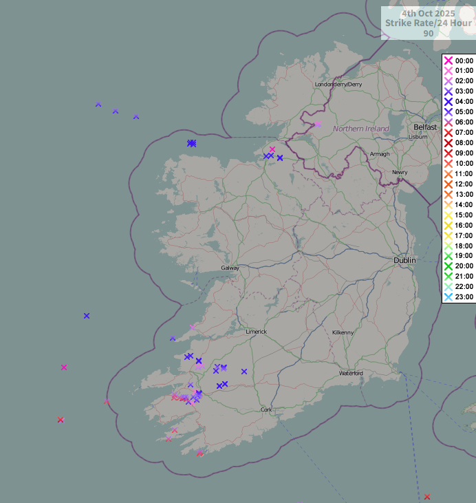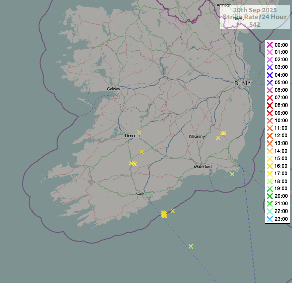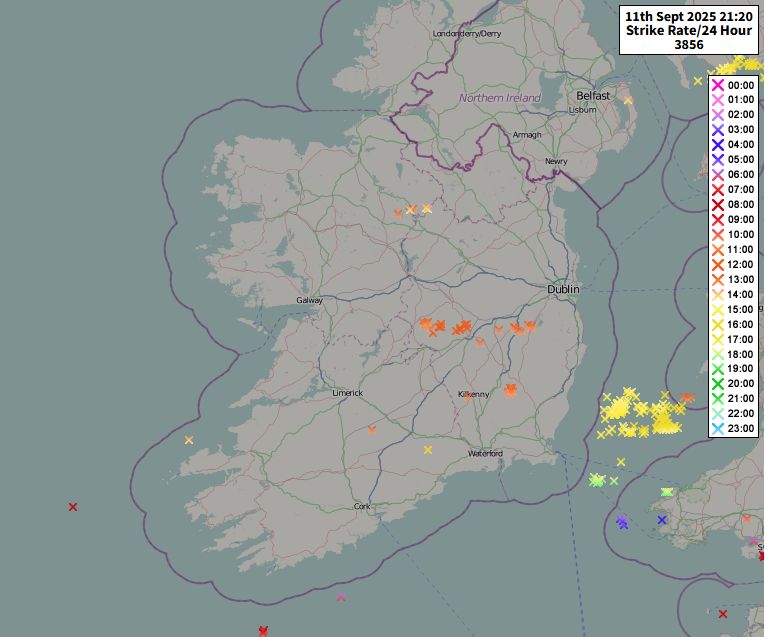 Thought I heard a rumble or two to the north a while ago but wasn't sure with the hedge cutting going on outside. Just looking at the radar now and looks like there was a good few strikes just north of Athy.