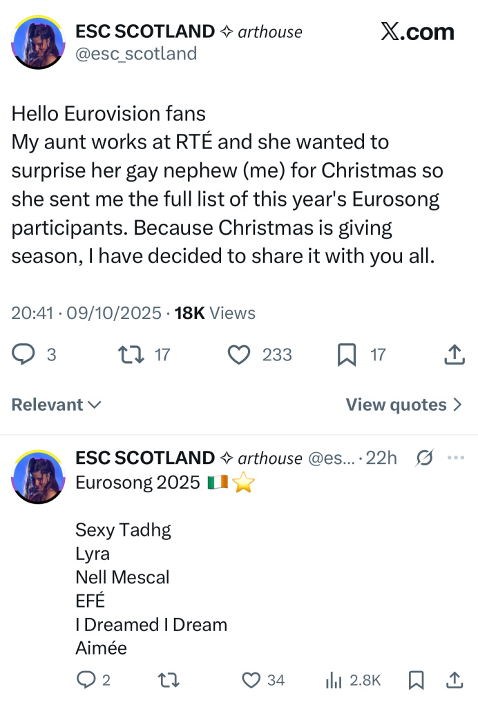 Don’t know if this is genuine or not, but I always feel you should trust what random Eurovision fans have said on X…