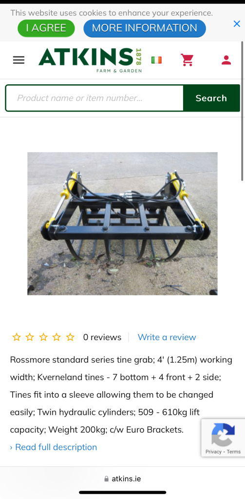 The Rossmore is not your average tine grab on Irish farms here is an example even on the light side as its a singke ram 4'. Most tendvto ve larger and twin ram. Admittedly this one was slightly adapted at one stage