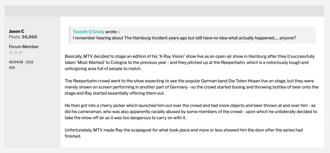 I've often heard about the "Hamburg incident" that ended Ray's career, but I never knew what actually happened.