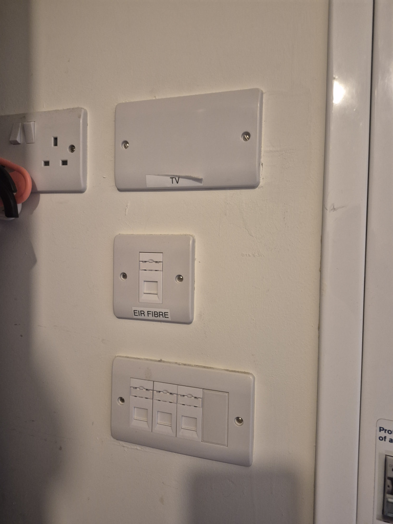 But if it is yeah, RJ45 port and as you said connect the ONT to that. In the utility connect your router to the "EIR FIBRE" RJ45 port. Connect three ethernet cables from your router to the three RJ45 ports on the wall.