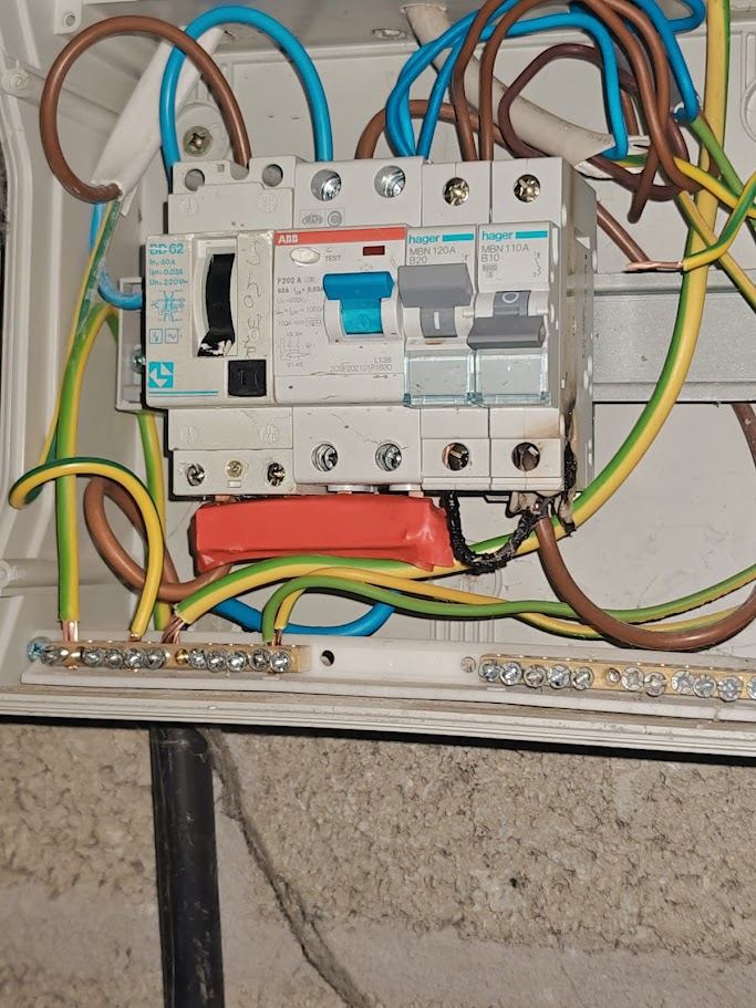 Got a nasty smell when I entered the garage earlier, saw this - will get onto an electrician in the morning but cant get my head around the way its wired( you can ignore the shower, there was one when we used to wash the dogs off out there). No longer used.