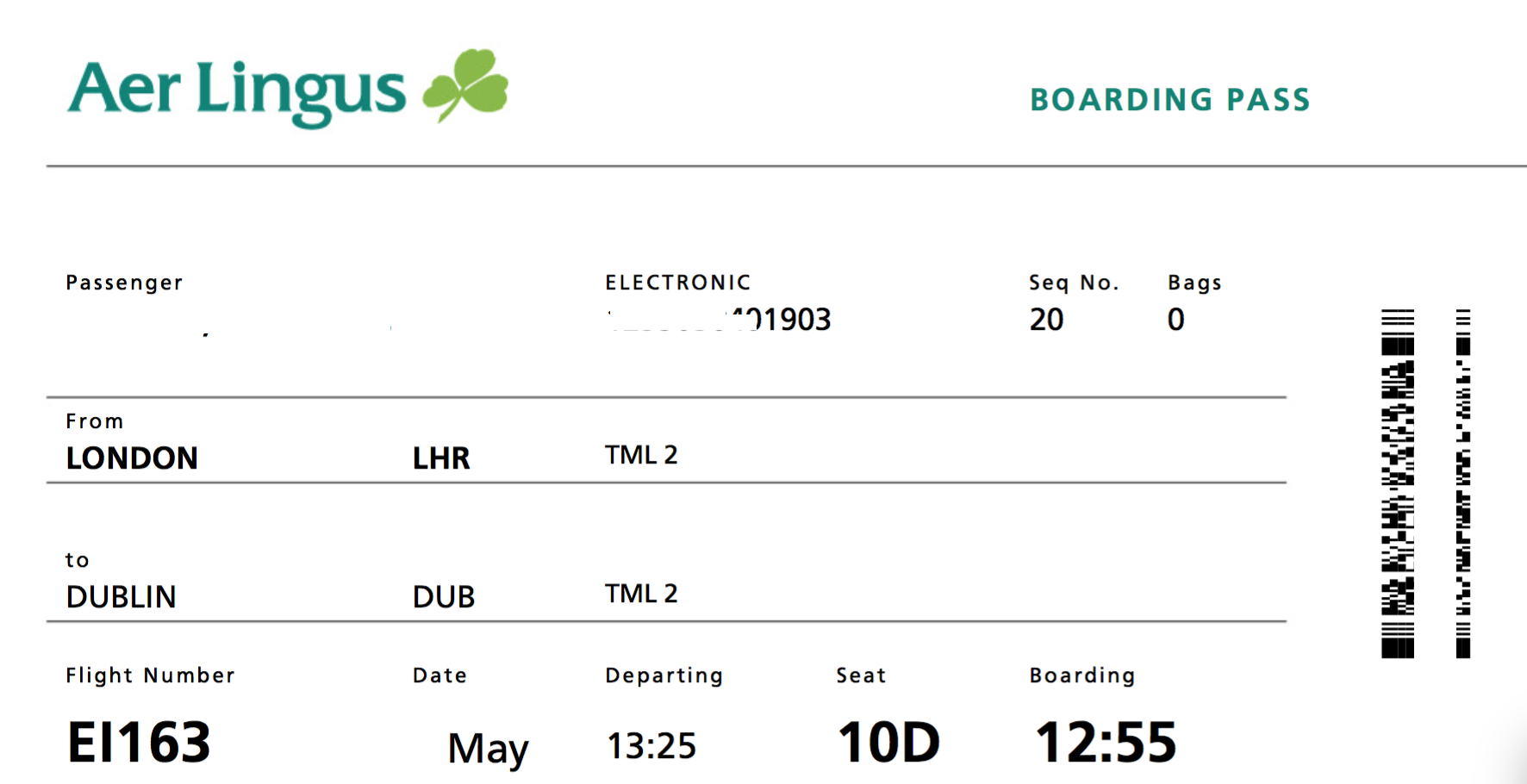 So your ticket number will appear where Electronic is shown on the boarding card.