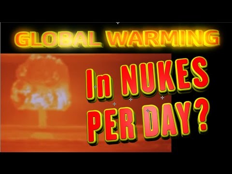 As per nuclear weapons. The extra energy trapped by the greenhouse effect dwarfs nuclear weapons