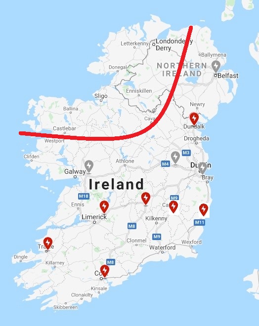 We need a supercharger on the m11 and m9 and then one in the southeast probably in waterford at the end of the M9 and the n25 to cork, that would cover then pretty much all of the country except for the northeast