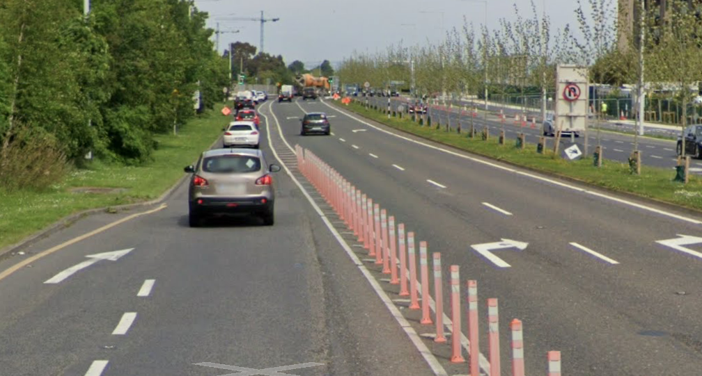 Taking the above slip to Goatstown brings you here; and to get into one of the turn right lanes (you need to be in the furthest right lane to then make the following turn from Blackthorn Drive to Blackthorn Road towards Tesla), you need to cross the solid white line/hatched area, and if those 2 lanes are busy that could be a nightmare...