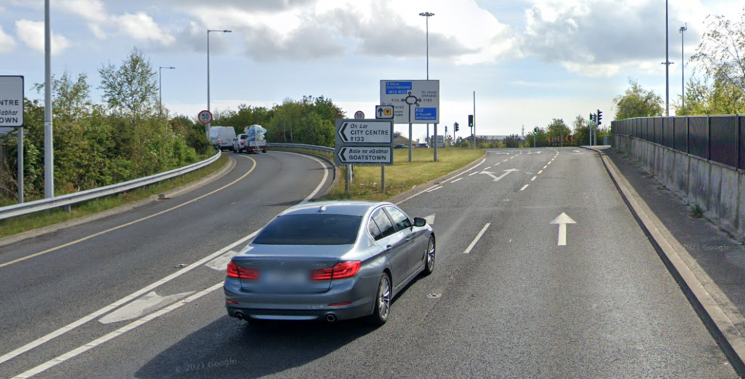 Coming to Sandyford from a Northerly direction (from the M50) is a bit of a pain if your not familiar with it as the car will tell you to take the slip towards Goatstown after exiting from J13 off the M50, but if you do take that slip, in order to turn right onto Blackthorn Drive you'd have to drive over a solid hatched line.... I've done it myself a few times as I wasn't too familiar, but the better option is to ignore the navigation and go straight up to the roundabout, and then take the left (just ahead of the Beemer below).