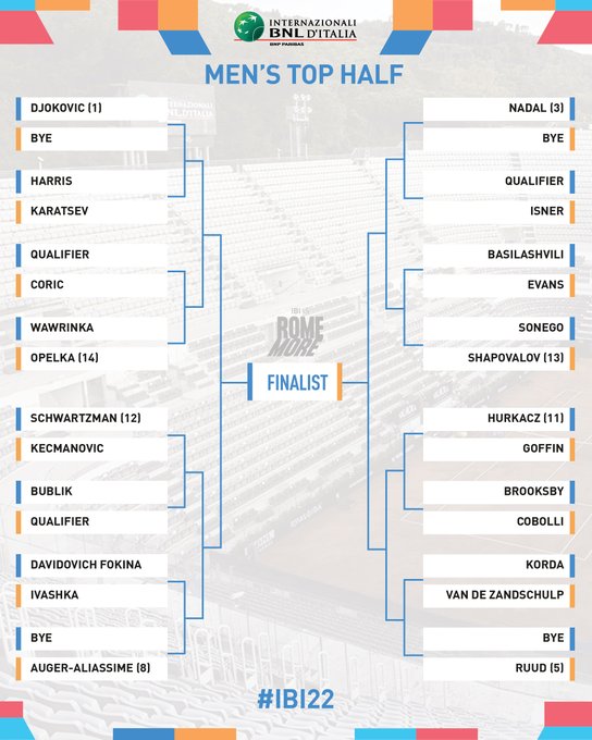 Some interesting matches on the women's side of Rome. Osaka-Sorribes Tormo rematch in the first round, the winner of which will face the winner of Andreescu-Raducanu.