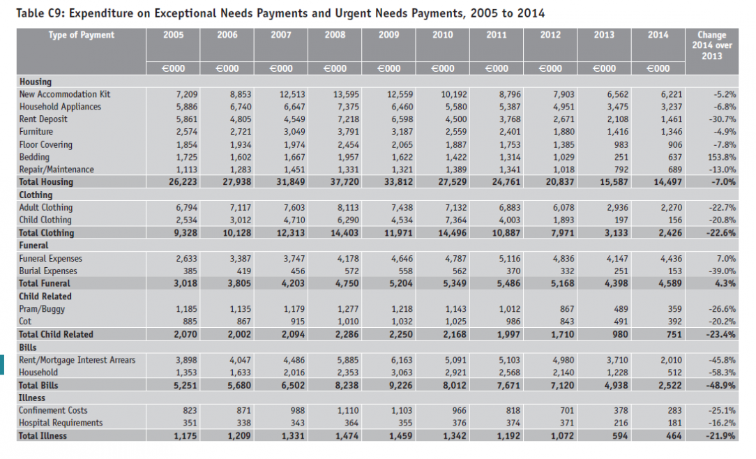 See Table H3 on Exceptional Needs Payments.
