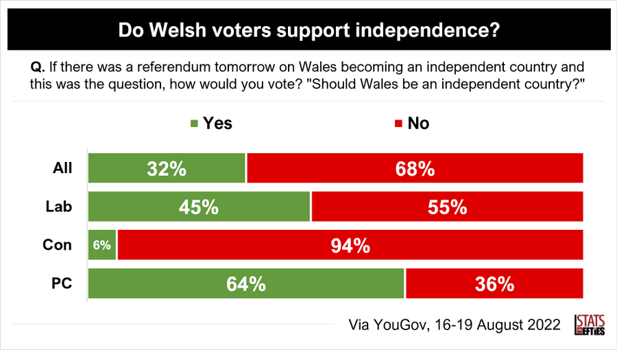 Interesting opinion piece here on Welsh independence. It makes the point that it's polling similar numbers to what Scottish independence was doing circa '07.