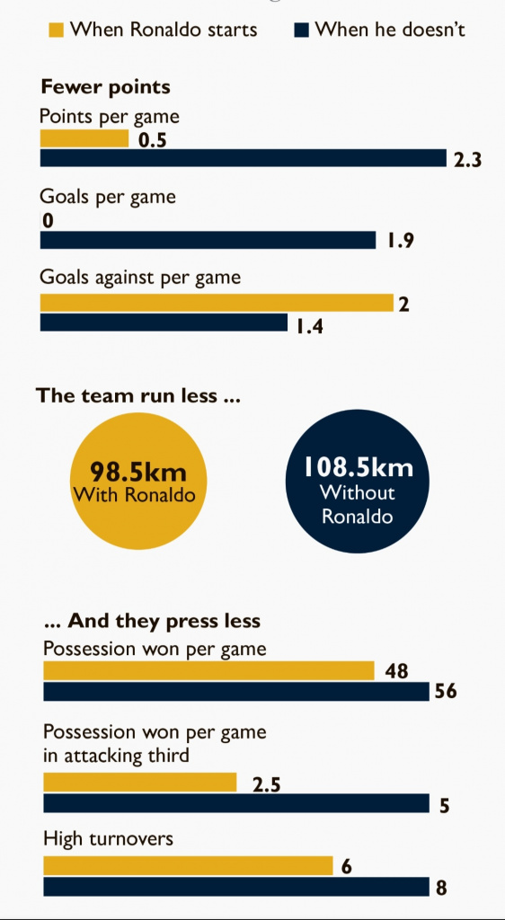 Except he didn't make out Ronaldo was as good as his peak. He correctly pointed out Ronaldo was MOTM against Spurs only back in March and scored a hat-trick, so either time has caught up with him in 7 months, or there's a coach at the helm with no clue how to make the most of the greatest goalscorer the game has ever seen.