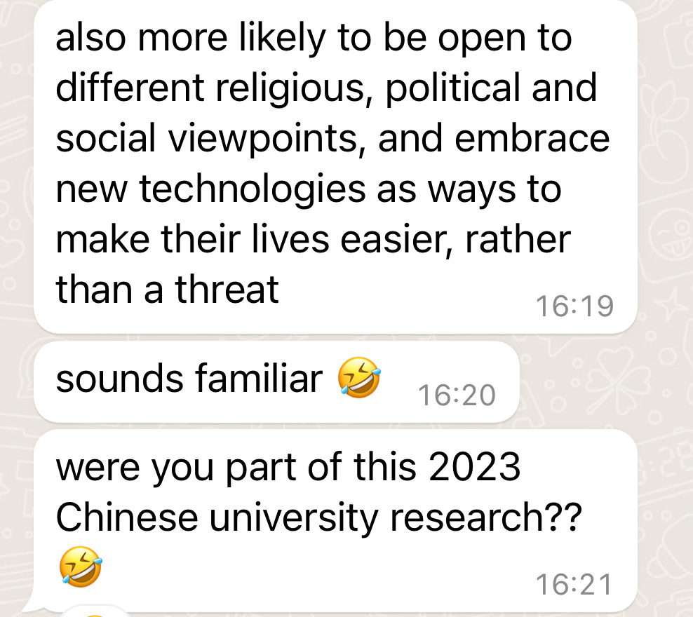 I got the following messages from a catholic colleague yesterday who knows I am very into chat gpt. She was quoting from a major university research about attitudes to chat gpt.