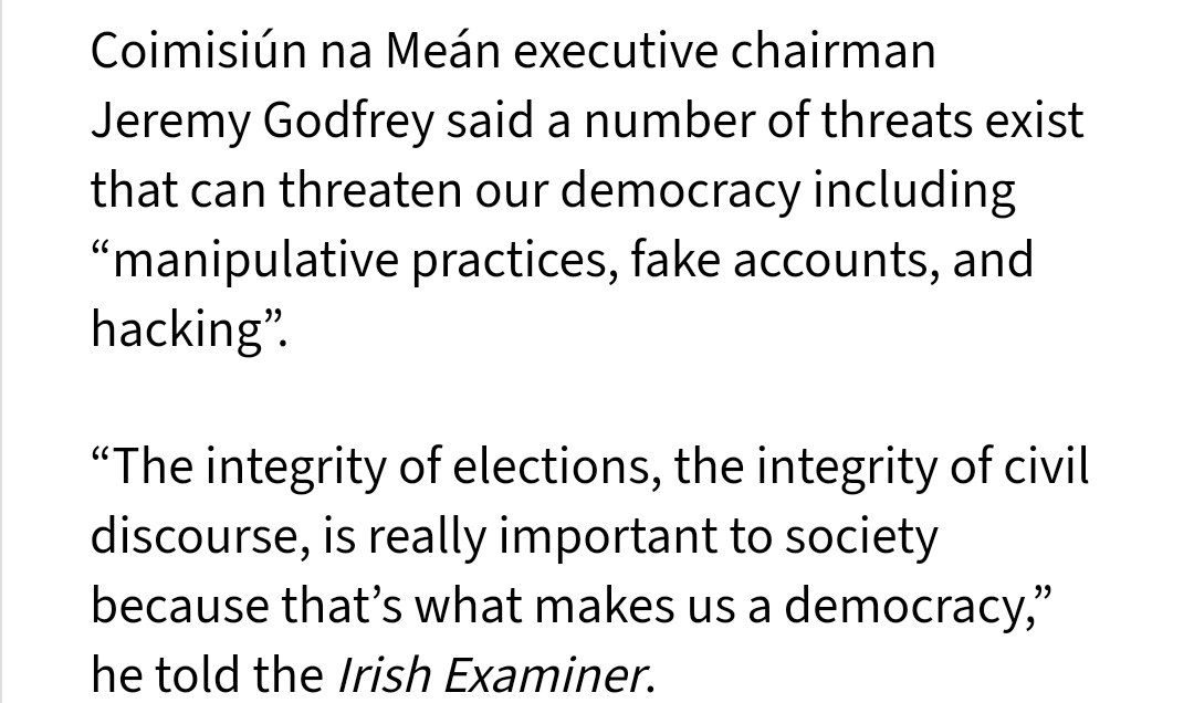 Sidenote: A lad called Jeremy Godfrey is the Chairman of the Coimisiún na Meán. He's a former Civil Servant in the British government and also worked for the Chinese government. Godfrey has listed his priorities as tackling misogyny and foreign interference. Their Primary Media Officer is far leftist Síona Cahill, a Antifa member.
