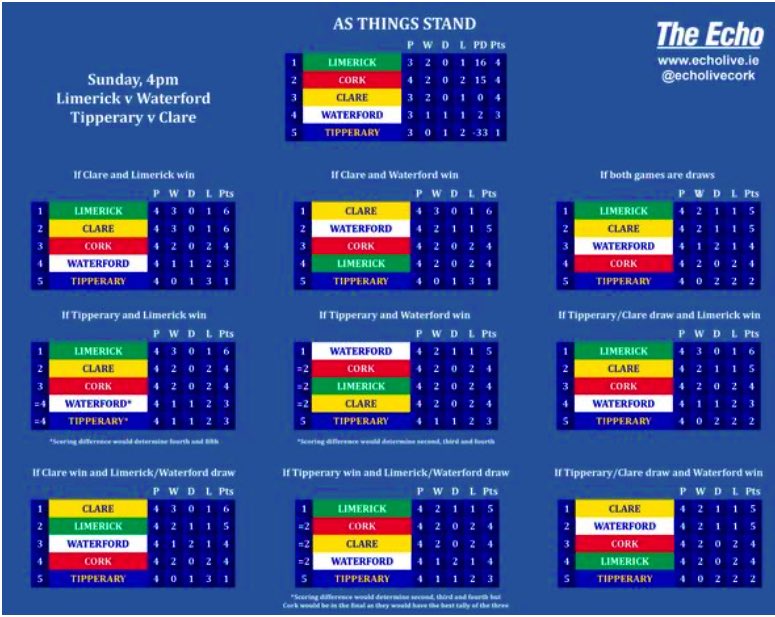 A Clare win and Limerick waterford draw, we are out too.