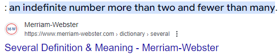 Firstly, the word "several" can be defined as "an indefinite number more than two and fewer than many" so my description was correct…