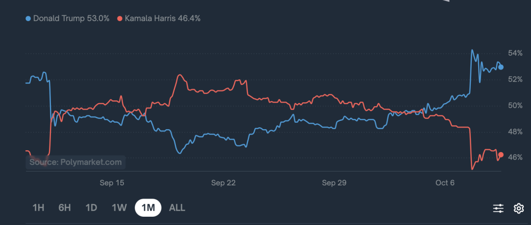 Again, its worth highlighting that polymarket is backed by Peter Thiel who is heavily invested in a Trump win.