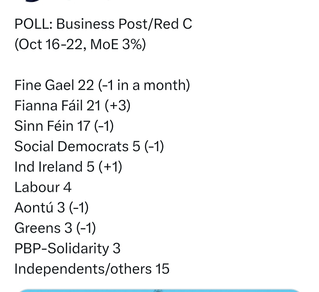 election over before it’s even officially announced.ff and fg to romp home.looks like the public have bought the few bob threw at them and believe the tik-tok Taoiseach and his endless videos of him working for you and his party’s “new energy “