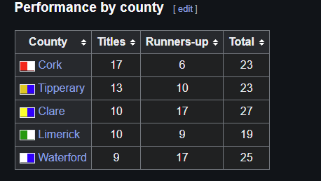 secondly would bring Waterford from 5th to joint 3rd on the county roll of honour
