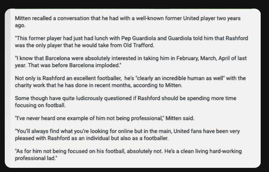 Was also interested when I listened to the time stamped part of the above that David Ornstein actually provided a balanced view of the situation and called it "a mess" while turning Scholes in circles about how long it's been since Rashford has performed. Wasn't mentioned in the posts here about the same interview.