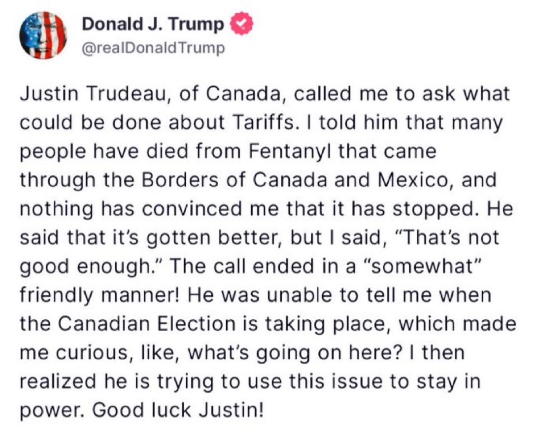 Trump had a call with "Governor" Trudeau. Doesn't look like it went too well.