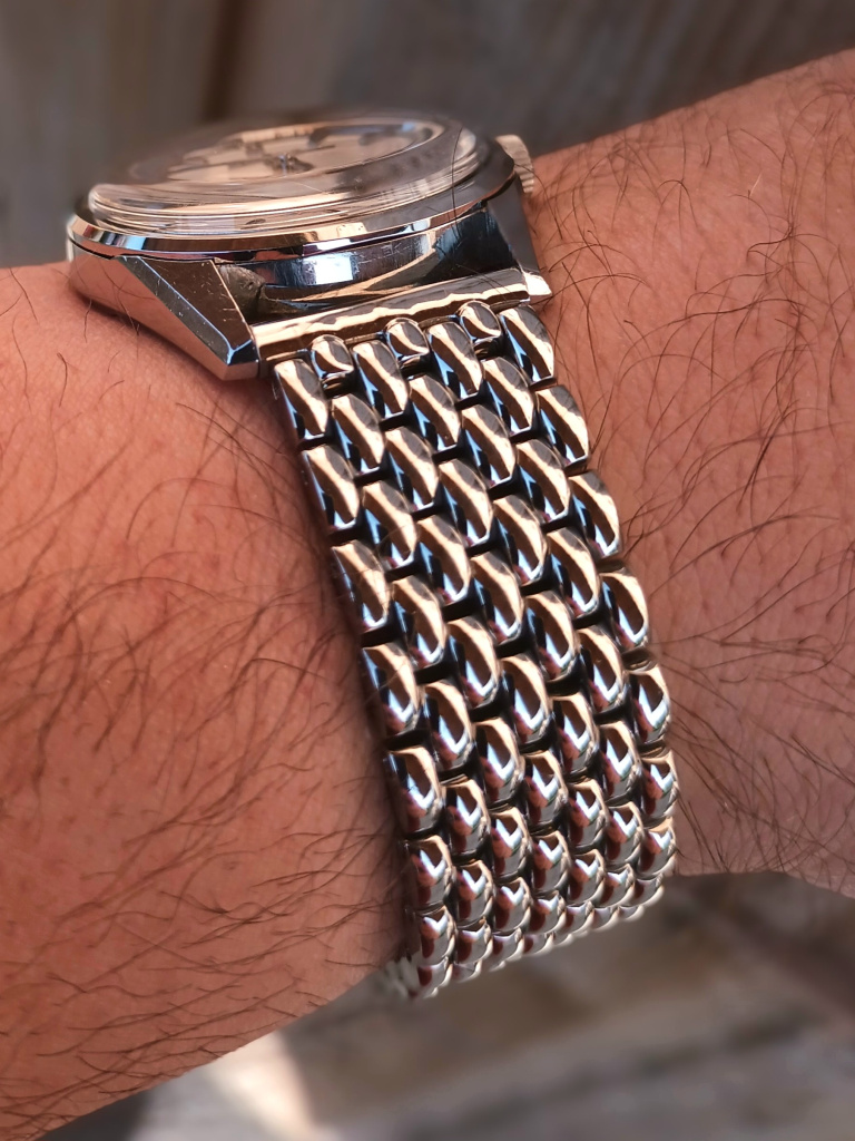 Just to note, I removed one link with 8"1/4 wrist. Bracelet itself is 18mm irrespective of what size end link you you spec, this is how they were back in the day. They will not sell end link separately unfortunately. Insane value at fifty quid imo. Here is is on my 19mm lugs.