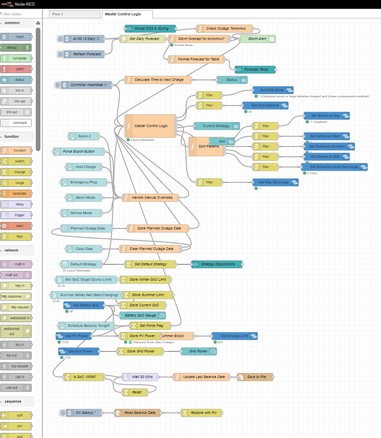 I used Gemini AI to programme all the NodeRED code in JSON and then just copied it into the CerboGX. I think I have it sorted now but I’m always thinking of adding some other features.
