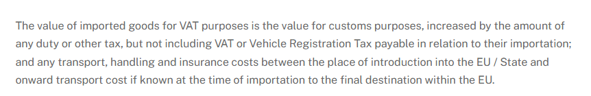 When I imported last year I paid the VAT amount on the invoice value and the transport cost. So it was double taxation.