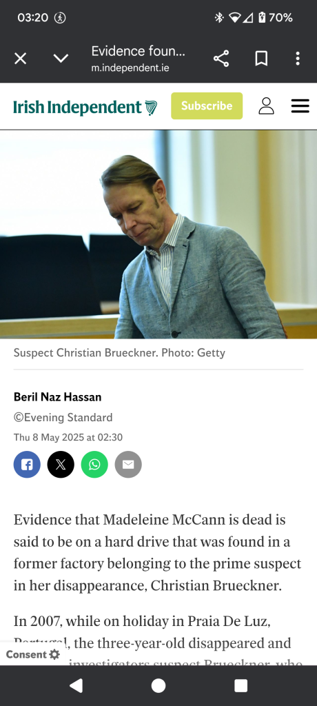 Pinning Bruckner in the area, in the timeline of her disappearance just isn’t enough…. Despite his previous convictions and form and him maybe justifiably being a suspect… “well, he was about, was seen”… if he wasn’t seen doing anything wrong though… a local pedo in my area is seen, doing his garden and various normal things. Might never reoffend.
