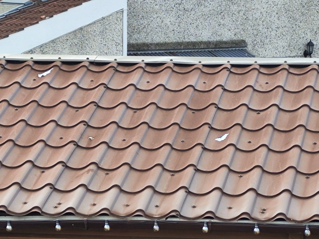 I dropped Steeltech an email and they sent someone out to check the issue. It turns out there is a problem with the pain adhesion on a couple of my roof panels that means the panels will need replacing.