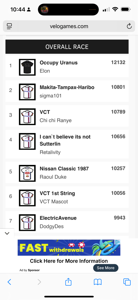 Thanks for the chat lads, not that I was that involved. Congrats to my mate, Elon who won the league. My wife and son both finished higher than me, again.