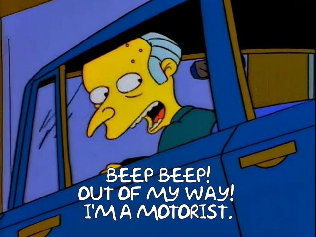 I'm happy for drivers to give a quick beep of the horn if they're about to pass. That's correct use of the horn. But that rarely (like once a year) happens. The principal use of the horn is as a "f**k you" button (happily, this also rarely happens to me - I can't remember the last time it happened).