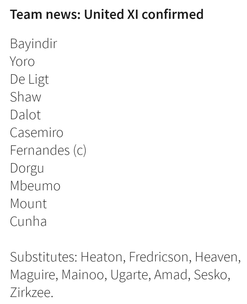 I thought he would have went Ugarte and Casemiro with Bruno as a 10 with one of Cunha and Mbeumo going 9.