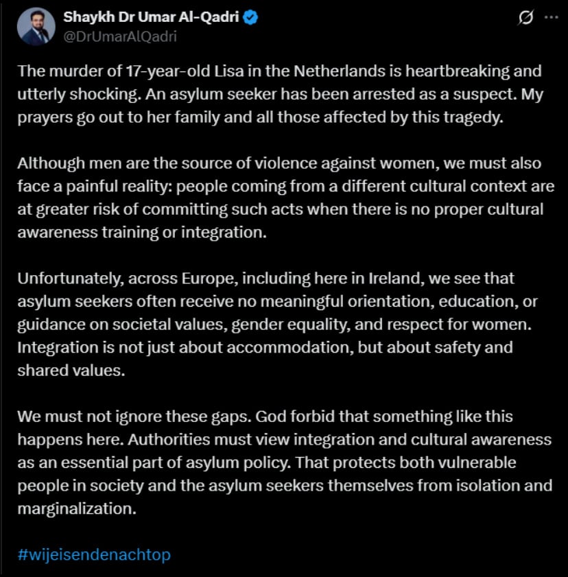 Regardless, refreshing to see that even the agitators in favour of the current state of affairs are openly acknowledging that arrivals from totally different cultures are often not compatible with Ireland’s societal values