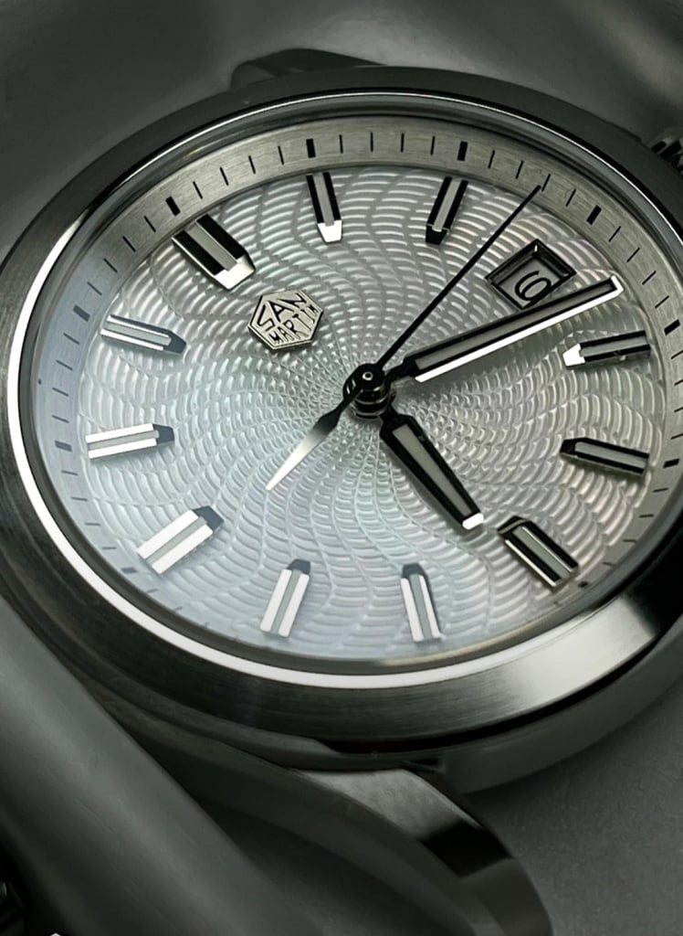 Entirely in house design with their own guilloche dial in mother of pearl. While it's not my bag personally hats off to them. It will be a more striking dial than this monochrome photo shows. Having worked with mop there is likely a large portion of spoilage in making these, it's a difficult material.