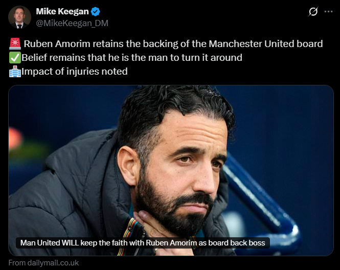 The big wigs are all in on Amorim. They don't want to have egg on their face. If he goes where does that leave Wilcox for example or even Berrada. Penny for the thoughts of Dan Ashworth….