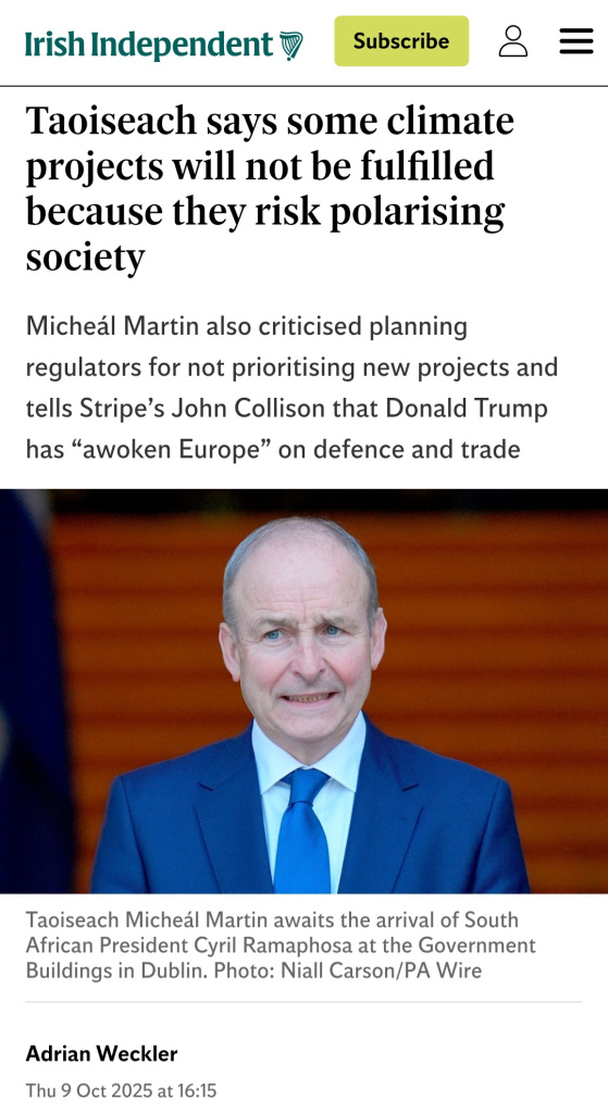 In addition RTE have signed on to the Climate Content Pledge, as have Coimisiún na Meán. RTE are a partner of Covering Climate Now. and they have received additional taxpayer funding to cover "climate" and "sustainability" topics.