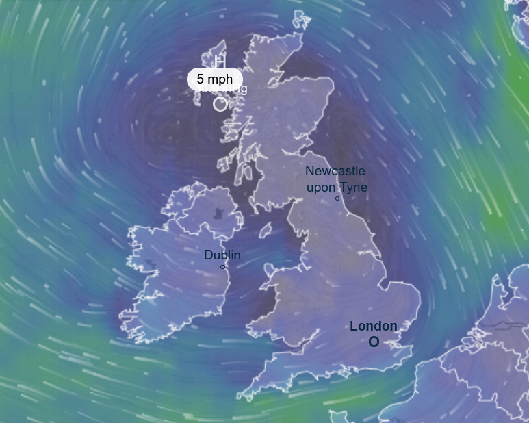 Speaking of weather dependent generation, there is an anti-cyclone(high pressure) parked over us and the neighbours for a few days and it is cloudy. No wind, no sun, yet the lights still work?