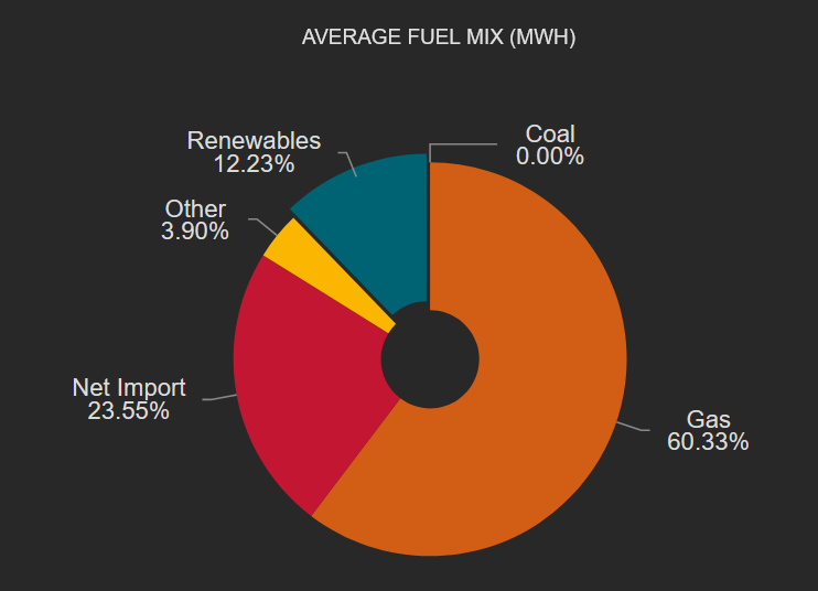 Imports from the UK (EMIC, Moyle and Greenlink) are almost 25% of our supply, Most of the gas we burn is transited via the UK. Since the same weather conditions affect the UK, it is fair to say that >80% generation is Gas.
