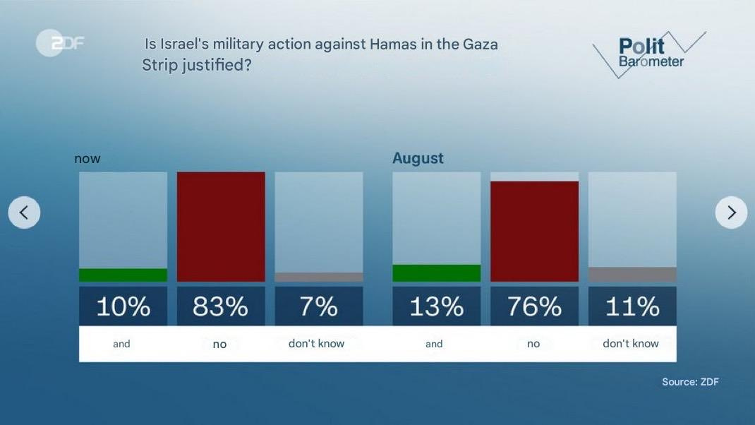 German politicians seem to be so out of touch with the general public going by the latest polls, like quite a few countries. All support for Israel is evaporating by the month it seems.