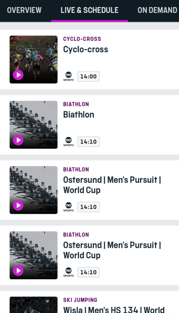 But there's nothing at all in the on-demand section for either sport. I believe they'll show live events when they're on, but how can it be so crap?