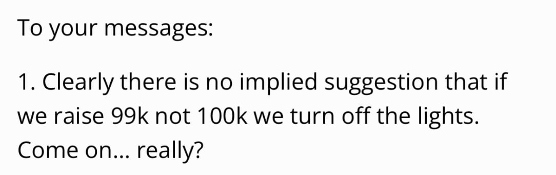 I do think the below message if we do not hit our goal we will be forced to close the site may imply that.