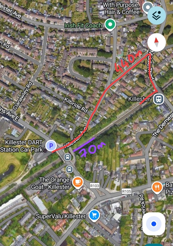 Actually I just realised “Killester DART station” car park is to the South of Collins Avenue, a good 500meters and across a busy road from the entrance to the actual DART station! Absolutely mad stuff.