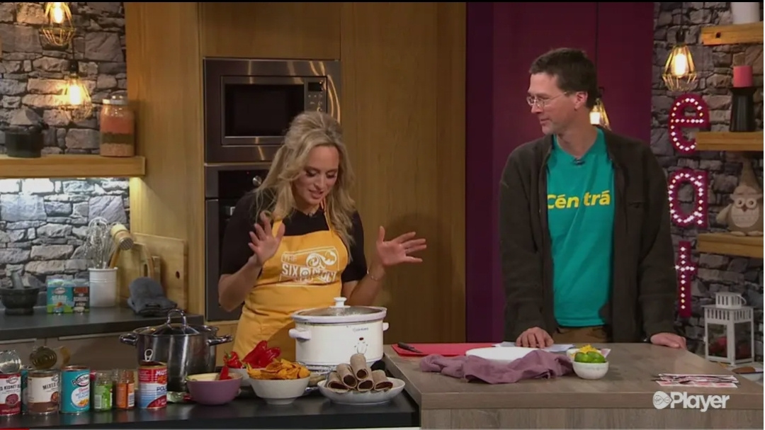 I'm not into t-shirts but a few times I saw Manchán wearing a t-shirt in the Centra colours, but with a slight modification. "Centra" became "Cén trá?". I liked it. 😊