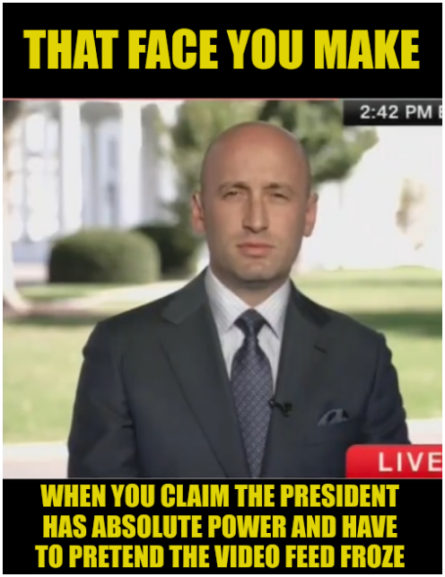 Poor old Steve, he had a technical difficulty with his voice last night after he said Trump had "plenary authority" over the U.S military. He wasn't able to communicate further with the person interviewing him after that point. Struck dumb is the best to describe the effect of his words on those listening, including himself.