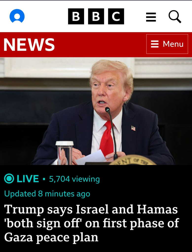 Clash Report@clashreport BREAKING: Trump:I am very proud to announce that Israel and Hamas have both signed off on the first Phase of our Peace Plan. This means that ALL of the Hostages will be released very soon, and Israel will withdraw their Troops to an agreed upon line as the first steps toward a Strong, Durable, and Everlasting Peace. All Parties will be treated fairly!This is a GREAT Day for the Arab and Muslim World, Israel, all surrounding Nations, and the United States of America, and we thank the mediators from Qatar, Egypt, and Turkey, who worked with us to make this Historic and Unprecedented Event happen. BLESSED ARE THE PEACEMAKERS!