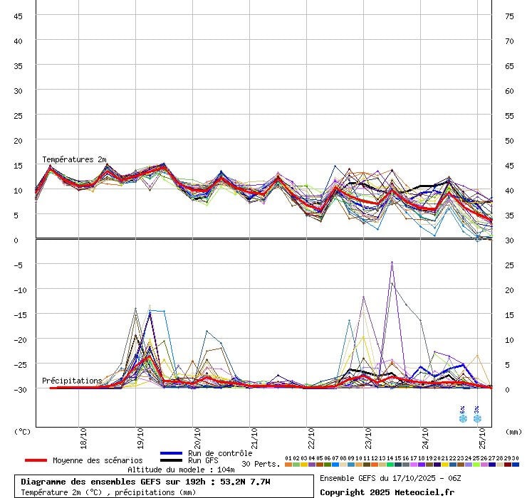 The latest GEFS ensemble data (US weather model) have shown the first entry on the snow bar for autumn 2025. The chart indicates a largely dry outlook for the coming fortnight, with below-average precipitation expected through to October 19th. However, the ensembles suggest a gradual shift towards cooler, and potentially colder, conditions during the final week to ten days of the month.