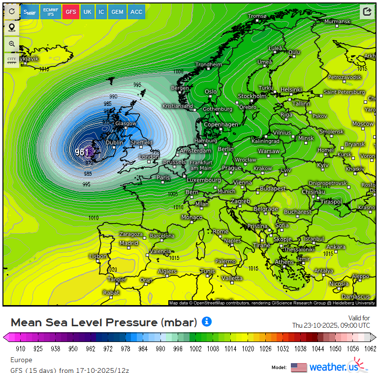 One to keep an eye on for sure. It certainly looks like Ireland could experience a spell of wet and very windy weather later next week, followed by a marked drop in temperatures as colder air moves in from the northwest.