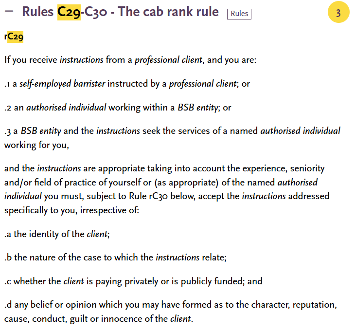 This is what a cab rank rule looks like (from the British rules for Barristers):