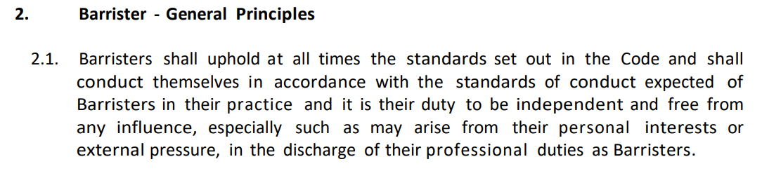 The bit that worries me most… There is a lot in that code of conduct about confidentiality between clients and barristers. At one juncture actually saying privacy has to be respected even after a clients death